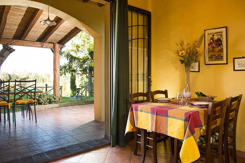 Die zwei nebeneinander liegenden Bauernhäuser sind im typisch toskanischem Stil gehalten. Das rote Landhaus beherbergt vier Ferienwohnungen, das Gelbe fünf. Alle Ferienwohnungen verfügen über eine gute Ausstattung, eine eigene Terrasse und Zugang zum Pool. Sie sind originalgetreu restauriert (eins neu, aber im alten Stil) mit interessanten architektonischen Details. Sie befinden sich am Dorfrand von Lari mitten in einem Obstgarten und Olivenhain. Man hat von dort einen sehr schönen Blick auf Lari mit dem abends romantisch beleuchteten Castello, auf Zypressen und Kirschbäume. Ein wunderbarer Ort für einen komfortablen, entspannten Toskana-Urlaub in der Natur.