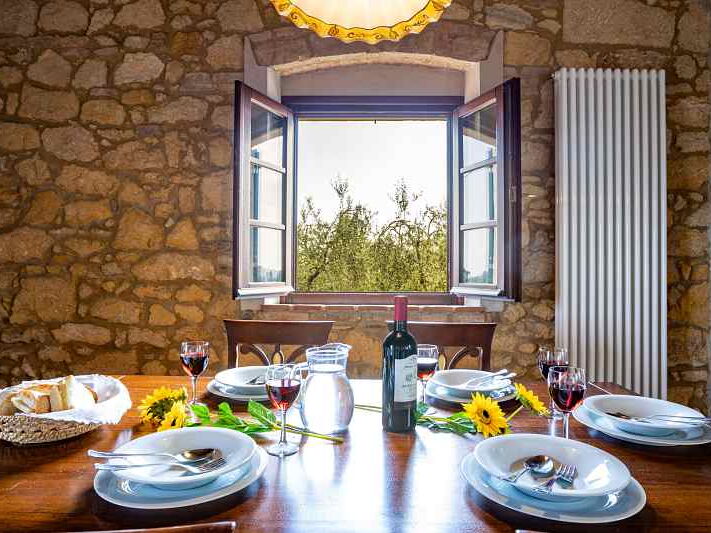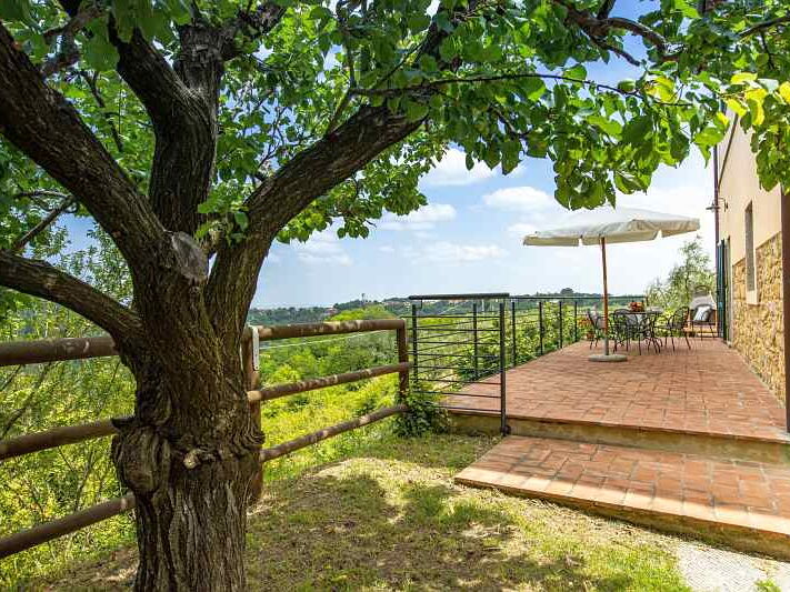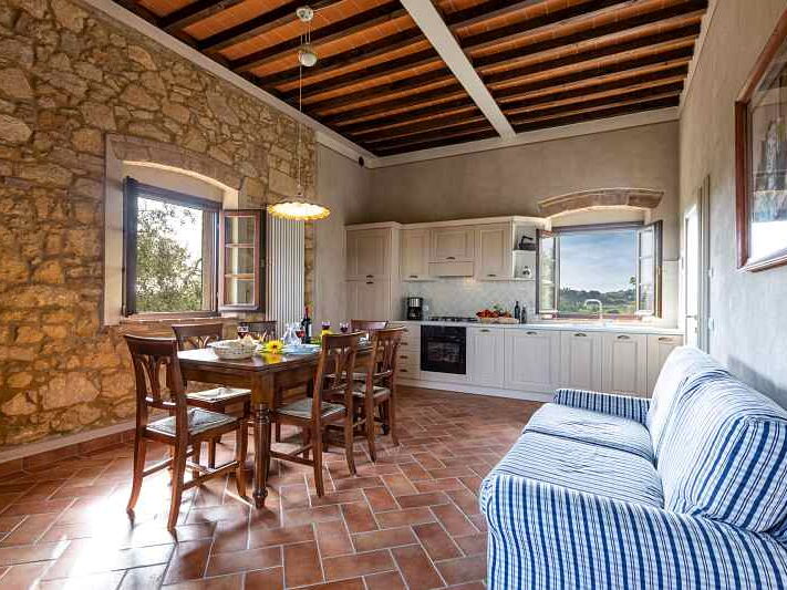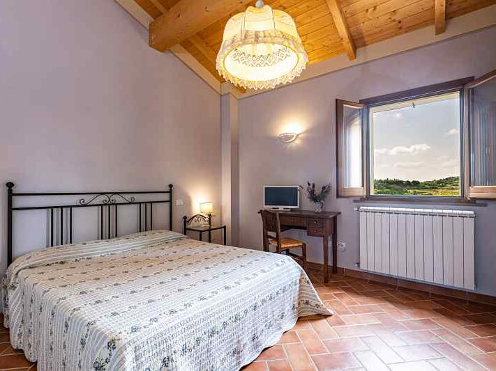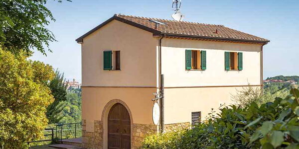 Einzelhaus, ca. 100 m², zwei Doppelzimmer mit herrlichem Panoramablick, zwei Bäder, ein Wohnraum/Küche, eigene gemütliche Terrasse mit traumhaften Blick, 4 km von Lari entfernt in einem hübschen Ortsteil gelegen, 35 km bis zum Meer, typisch toskanisch die Holzbalkendecke und der Terrakottafußboden. Zum Haupthaus/ Weingut und zum Pool sind es wenige Schritte, Parkplatz ist am Hau, hübsche Spazierwege ebenso. Wer sich den frisch angesetzten Speck vom leckeren Essen im Restaurant wieder abtrainieren möchte findet direkt vorm Haus eine Fitness-Strecke.