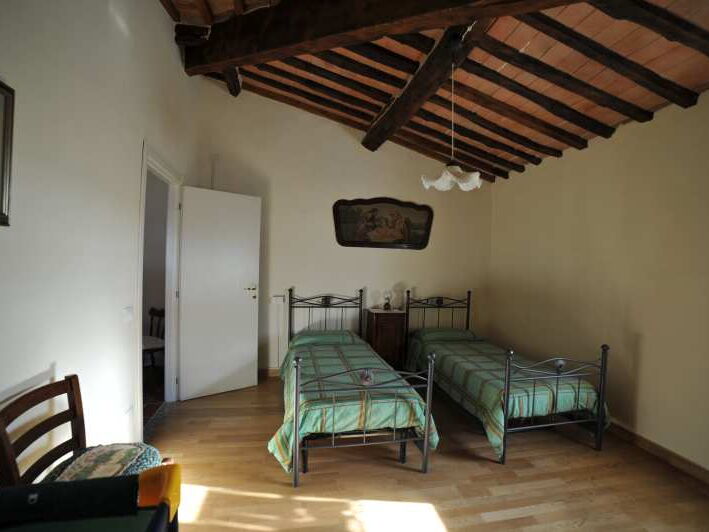 Im ersten Stock gelegen, bietet diese Ferienwohnung einen herrlichen Rundumblick über die sanften Hügel der Toskana. In einem Bereich verfügt sie über zwei Schlafzimmer, Küche und Bad und daneben über Wohnraum und zwei weitere Schlafzimmer, siehe Plan. Alles ist sehr geräumig und gemütlich eingerichtet. Sollte irgendetwas fürs Wohlbefinden fehlen, wird es Bruna behende herbeizaubern. Die Ferienwohnung ist ausgesprochen sauber und gepflegt.