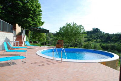 Ja, der Pool ist klein, genau 6 m im Durchmesser. Dafür hat er eine herrliche Lage im Olivenhain mit Blick in die bezaubernden toskanischen Hügel.