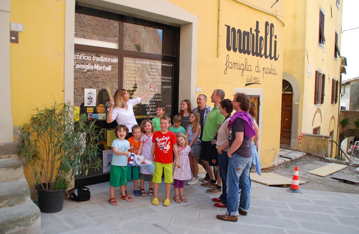 Die Führung in der Nudelfabrik Martelli: Besucht Laris Spaghetti-Fabrik, die im Herzen der Toskana direkt unter dem Castello in einer der kleinen Gassen als Familienbetrieb seit 1926 geführt wird und einzigartig in Italien und in der ganzen Welt ist. Die winzige Fabrik liefert beste Gourmet-Pasta rund um den Globus. Familie Martelli lässt Sie gern in ihr Reich und man erfährt, wie die Pasta (Nudeln) hergestellt werden und was ihre Produkte so anders und wertvoll macht. Einfach vor Ort nach Luca Martelli fragen und er wird sie Euch gern zeigen.