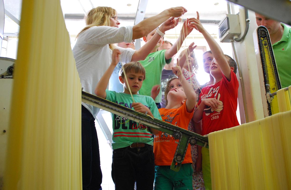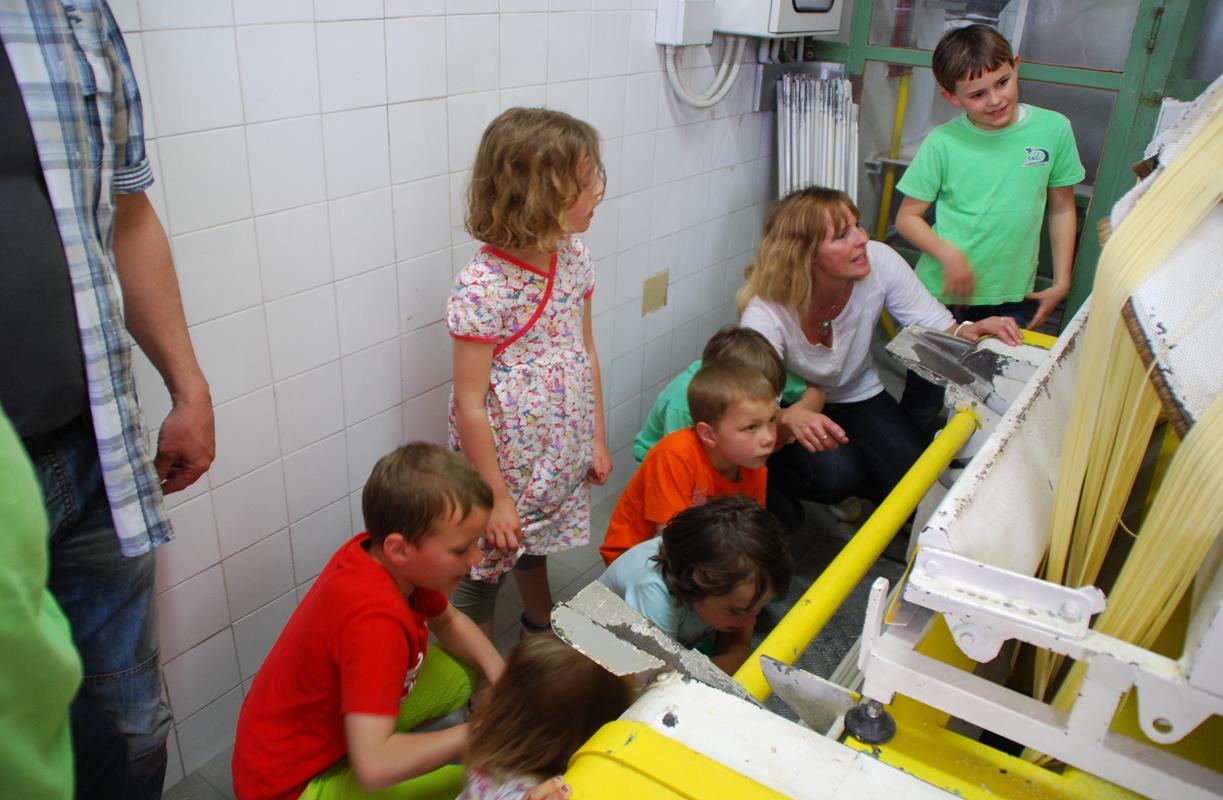 Ein ausgesprochen beliebtes Ereignis bei Erwachsenen und Kindern ist die Besichtigung der kleinen Gourmet-Spaghettifabrik Martelli